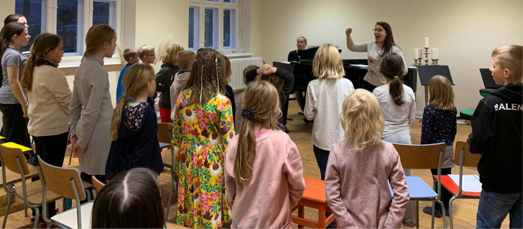 Die Fröhlichkeit unserer beiden Chorleiterinnen Norienne Olberg und Tina Richter während der Chorarbeit ist ansteckend. Die Kinder werden liebevoll herausgefordert, ihr stimmliches Potential zu entfalten.